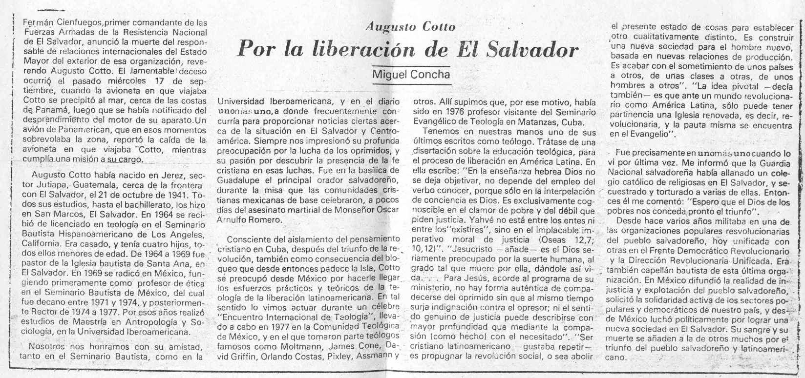 Artículo de Miguel Concha en