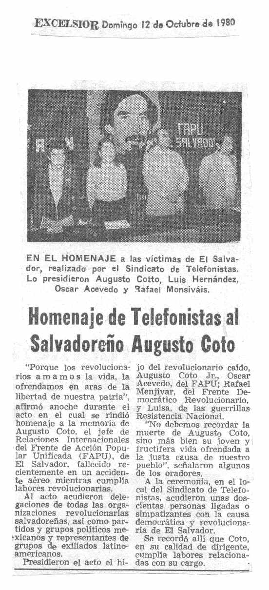 Nota del Excélsior del 12/10/80